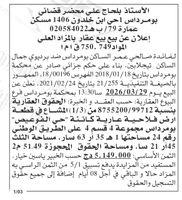 Il sera procédé à la vente au plus offrant et dernier enchérisseur le :