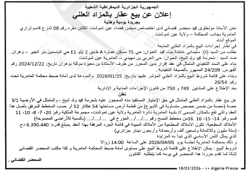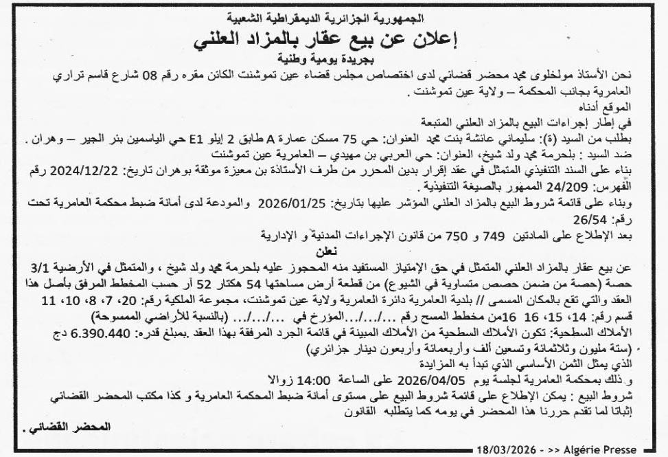 Il sera procédé à la vente au plus offrant et dernier enchérisseur le :