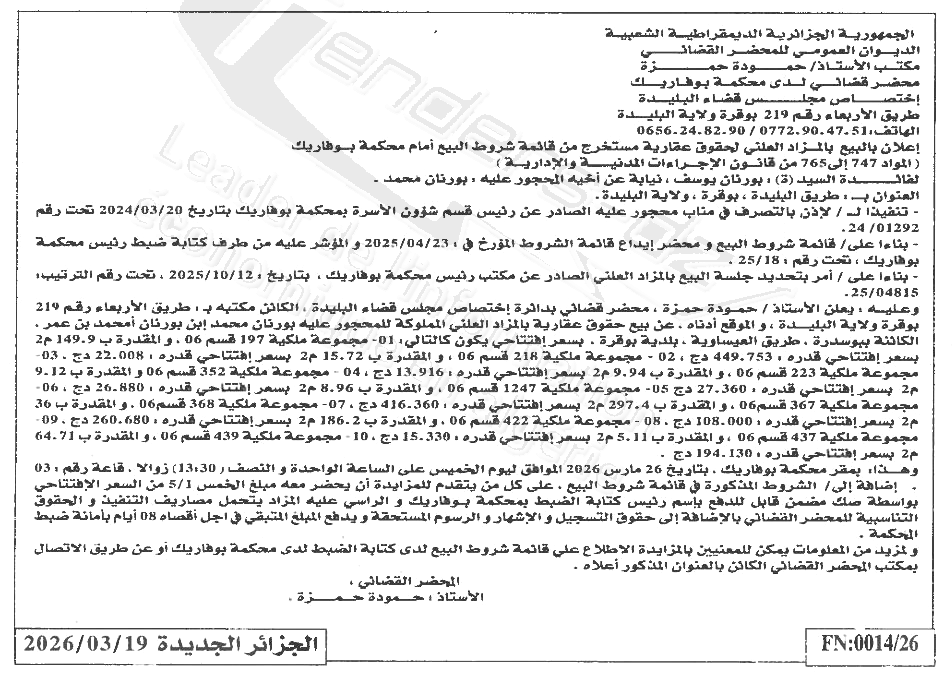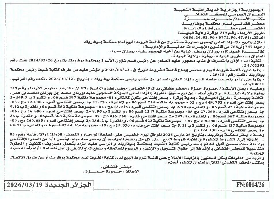 Il sera procédé à la vente au plus offrant et dernier enchérisseur le :