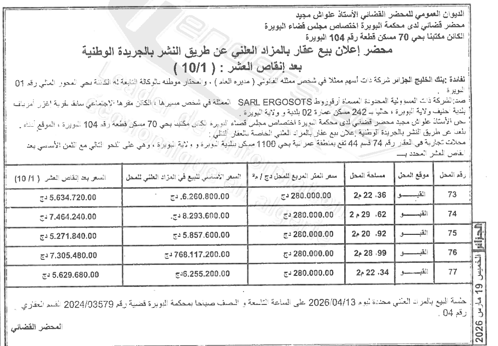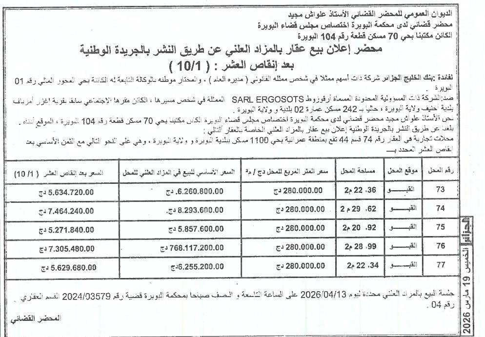Il sera procédé à la vente au plus offrant et dernier enchérisseur le :