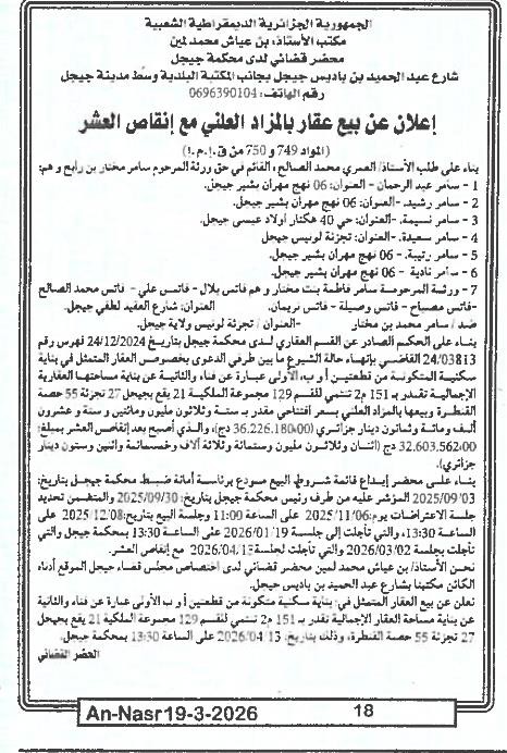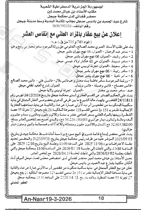 Il sera procédé à la vente au plus offrant et dernier enchérisseur le :