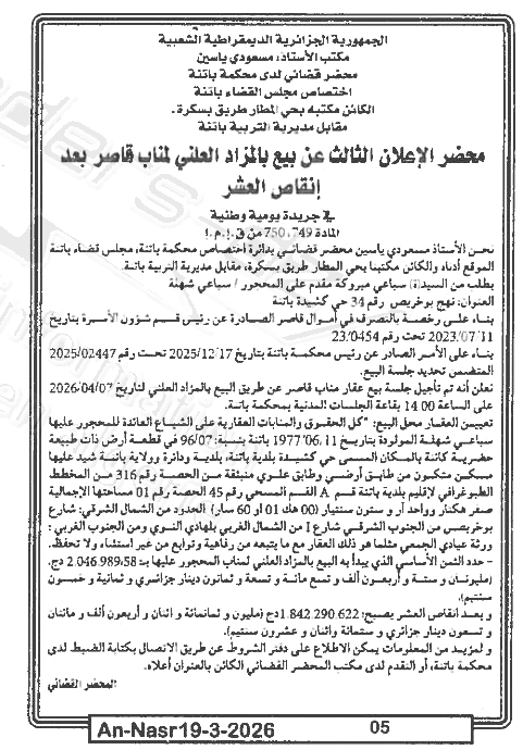 | Paru dans le journal : النصر | |