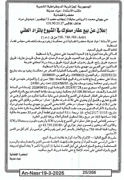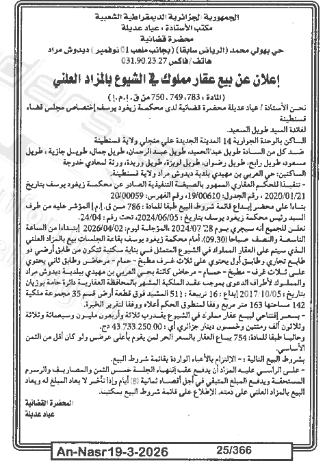 Il sera procédé à la vente au plus offrant et dernier enchérisseur le :