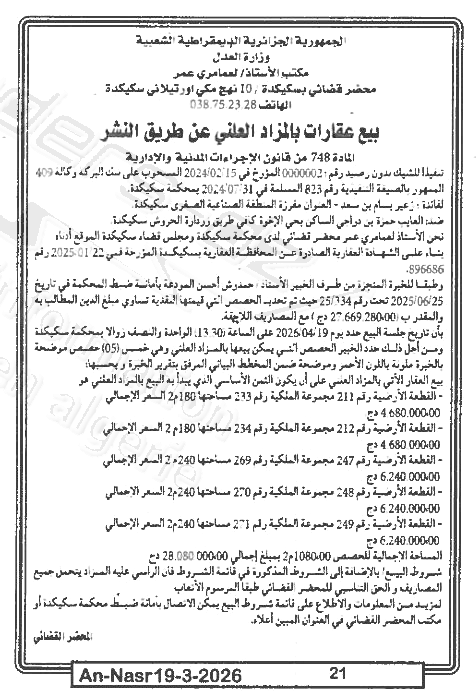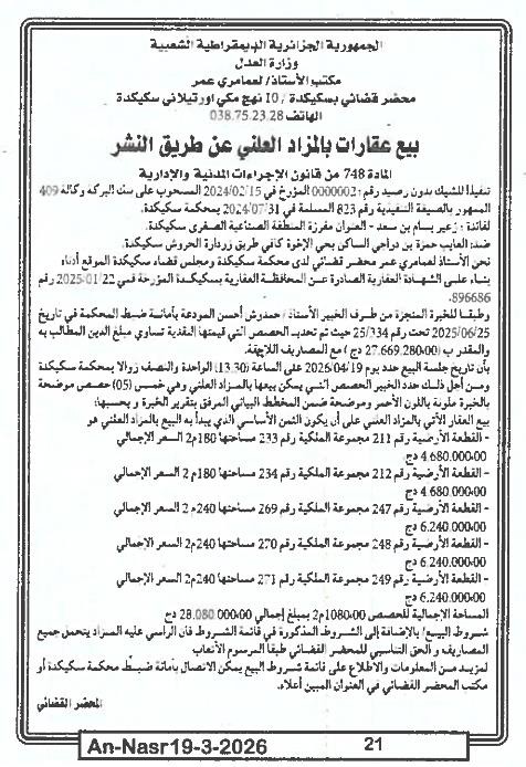 Il sera procédé à la vente au plus offrant et dernier enchérisseur le :
