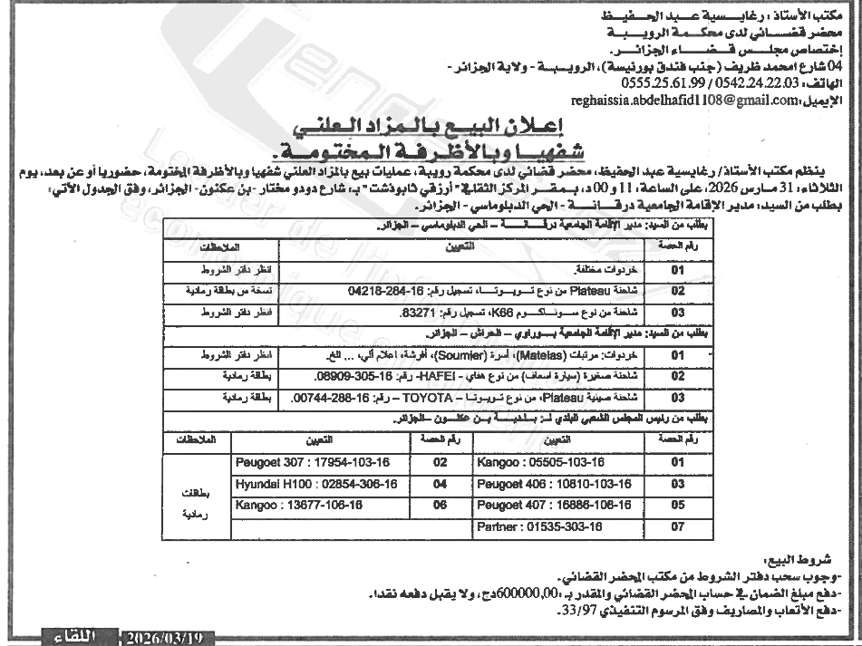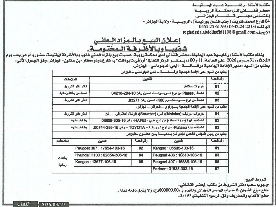 Il sera procédé à la vente au plus offrant et dernier enchérisseur le :